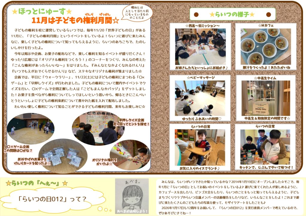だれでも参加できて、たのしくらいつの12周年をお祝いするイベントなので、ぜひあそびに来てね!何ができるか、どんなお祭りになるかはチラシをお待ちください☆