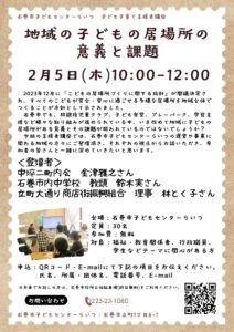 「地域の子どもの居場所の意義と課題」日時:2月5日(木)10:00~12:00